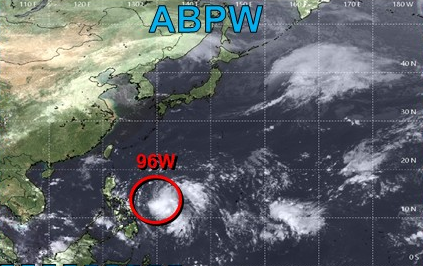 赤色で示されている96Wが台風24号たまご(熱帯低気圧)に変わり、台風へと発達する可能性があります。