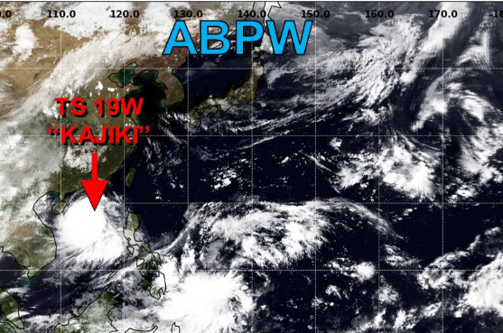 米軍の予報では、赤色で示しているTS19W”KAJIKI”台風13号を確認しています。